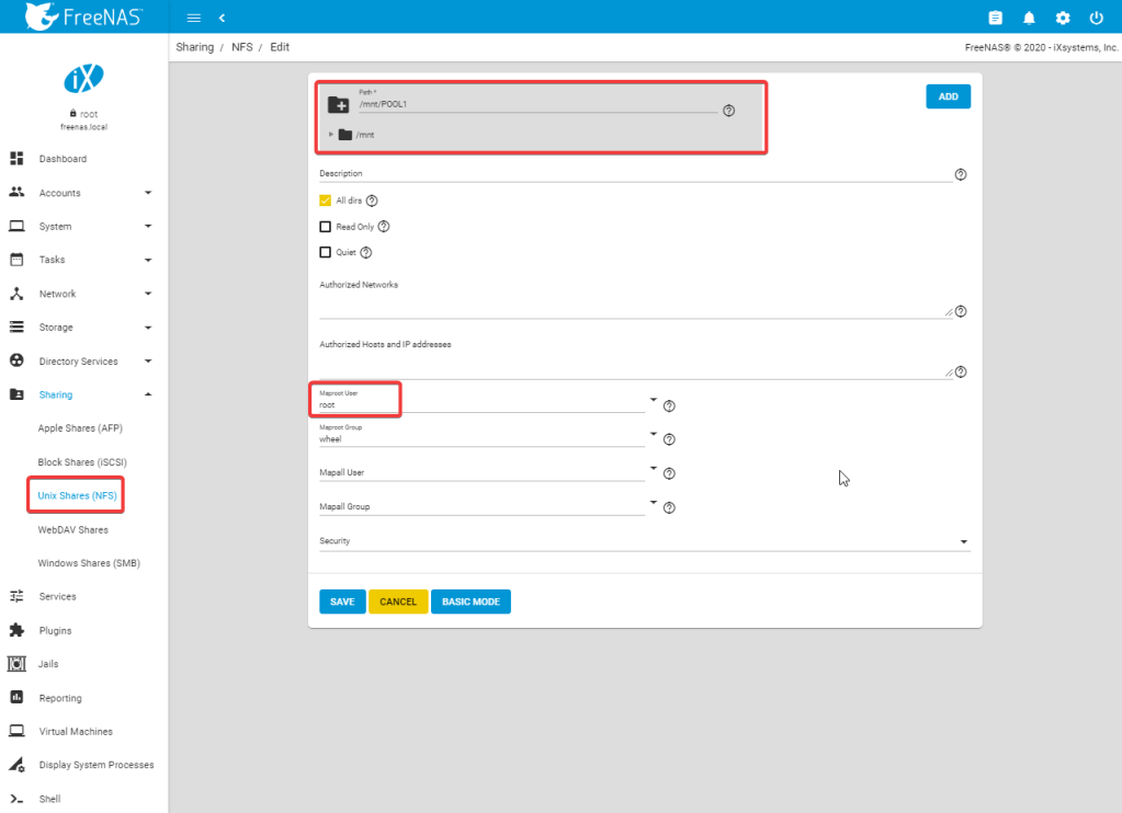 To prepare our NFS share with the needed files to boot our Raspberry Pi from, we will SSH into our Freenas box, download and extract the Raspbian OS image, mount the image and copy the boot and root files to a folder in our NFS share.